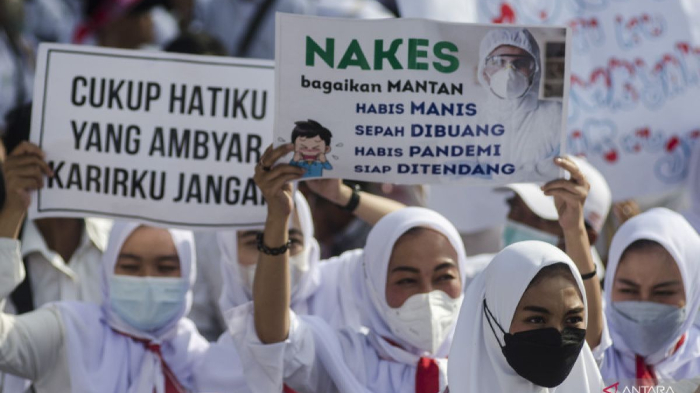 “Kalau nakes di daerah itu, itu tanggung jawab Pemda sebenarnya. Itu sebenarnya bukan tanggung jawab pusat, itu tanggung jawab daerah. Jadi karena otonomi daerah sudah mengatur itu. Jadi pusat nggak bisa cawe-cawe ke sana,” kata Irma.